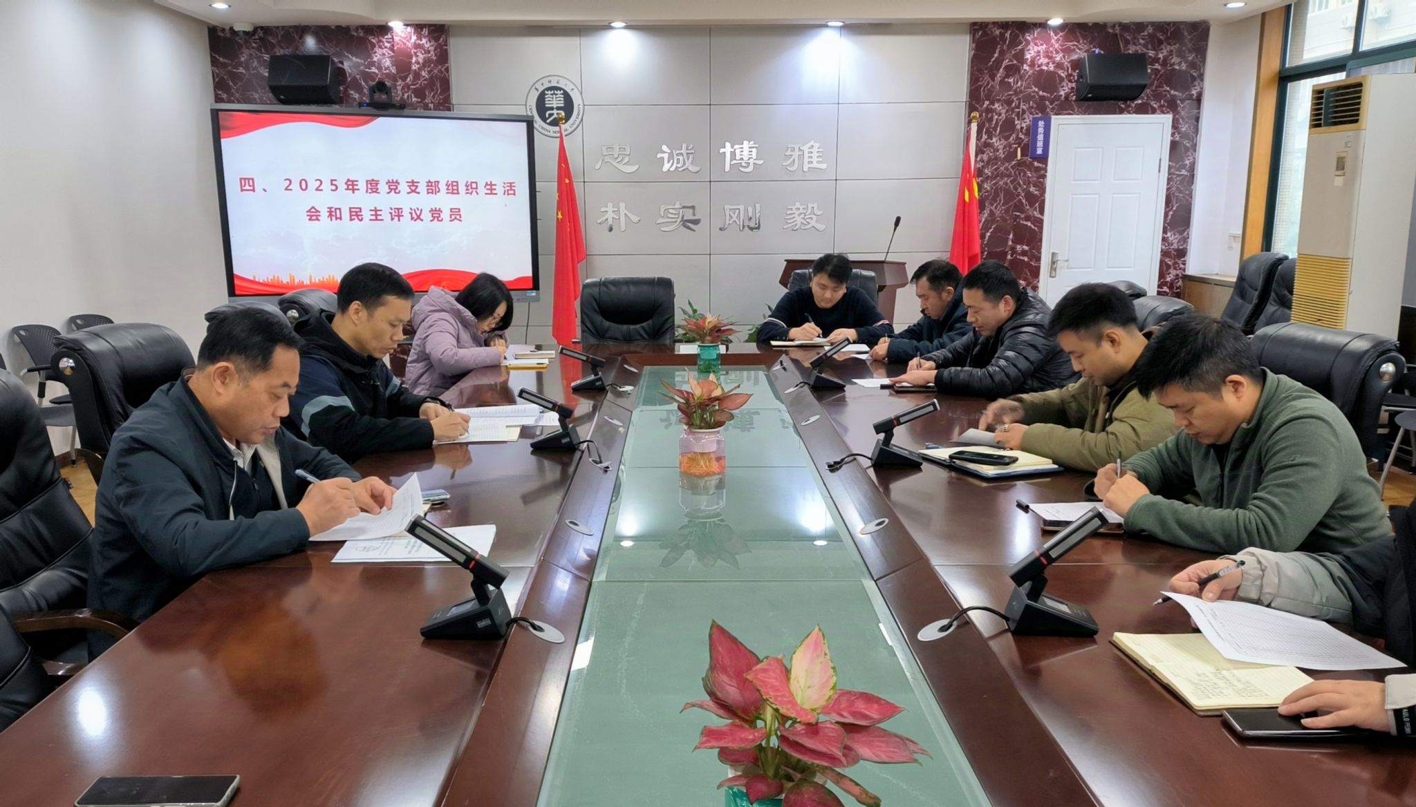 会议第二项,党支部组织全体党员开展 2025年度组织生活会和民主评议党员活动。首先,王军代表支委报告了支部年度工作,并对问题查摆情况进行了通报;随后,党员们认真严肃开展了批评和自我批评;最后,全体党员对党支部、党员进行民主测评。