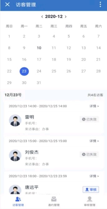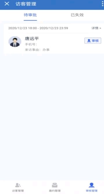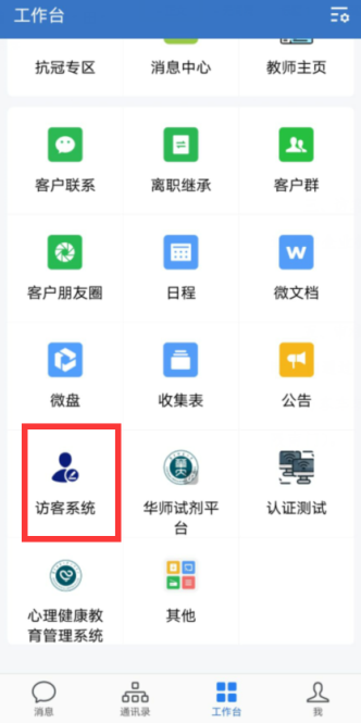三、访客申请提交后,被访老师将收到企业微信发出的信息提醒;被访老师通过点击企业微信中的访客系统应用,即可对来访人员进行审批。