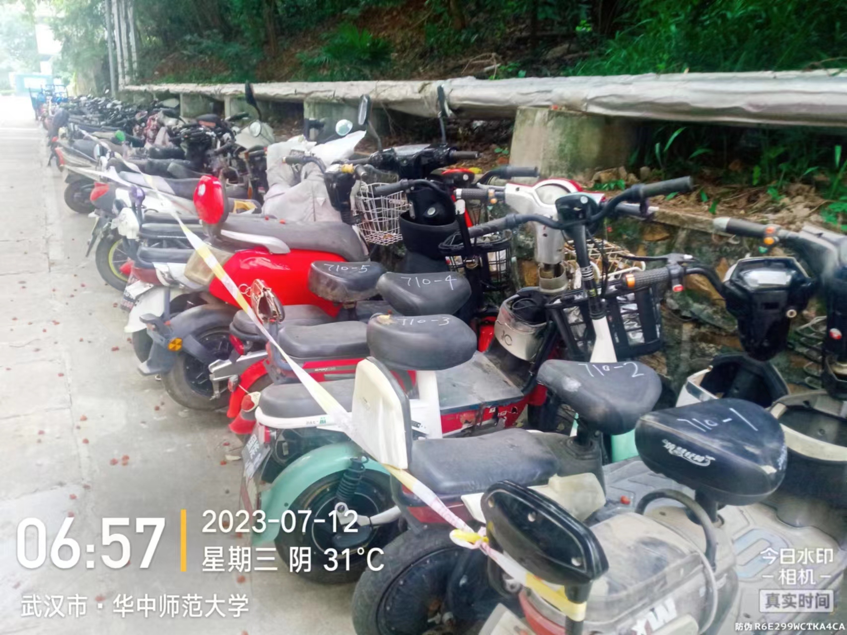 为建设美丽文明校园,将有限的停车区域释放出更多的停车空间,保卫部(处)于2023年7月10日至14日期间在全校范围内组织了“僵尸车”清理整治行动,将长期停放无人使用,轮胎没气、没有电瓶、链条锈死等车况极差的“僵尸车”予以清理,进行了拍照和编号,并集中保管在化学楼后和南湖校区11栋对面空地(该区域均安装有监控)。