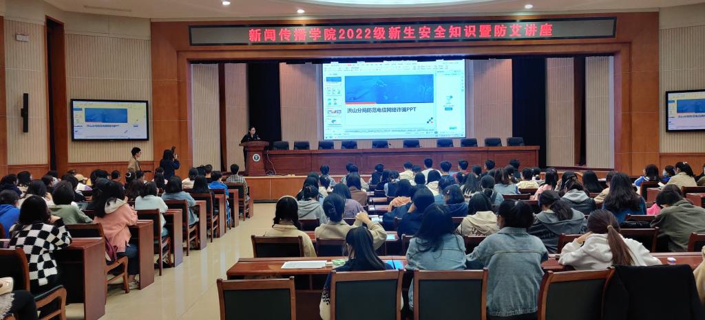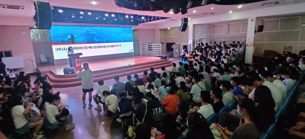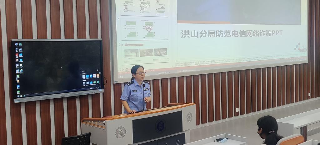 自新学期开学以来,保卫处邀请洪山区公安分局反电诈专家进校园为全校师生授课,讲解反诈骗安全知识,结合具体案例,介绍了刷单、冒充好友、冒充客服、网络购物、网络兼职、网络游戏、“杀猪盘”诈骗、裸聊和网络抽奖等最容易遭遇的九种诈骗形式,提醒大家要戒除贪念、不惧恐惧、当面核实、遭遇诈骗后及时拨打110。