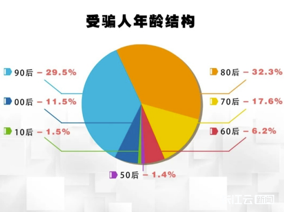 的确,这是一轮有“预谋”的行动。34000条电诈短信,共“击中”华中师范大学321名大学生。湖北省公安厅调查数据显示,2023年1至7月,湖北各级公安机关受理的电信诈骗案件中,“90后”受骗者占比29.5%、“80后”占比32.3%,两者相加占比高达61.8%,成为电信诈骗最大受害群体。