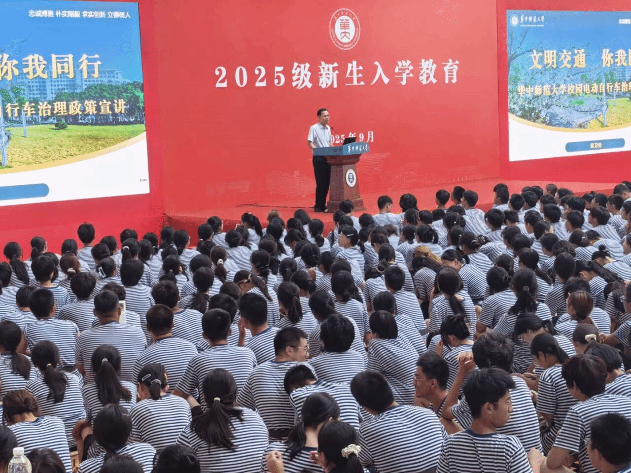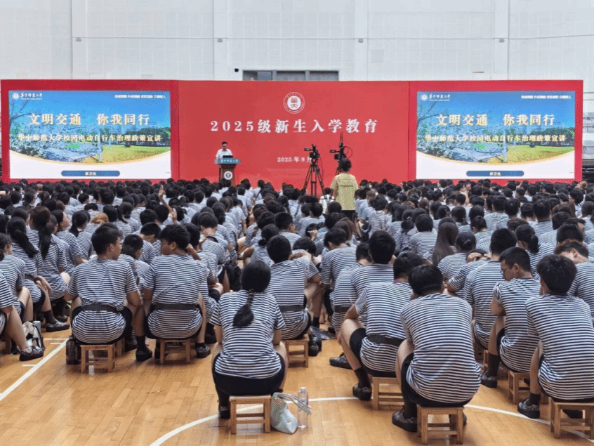 活动伊始,保卫处处长王军以“文明交通,你我同行”为题围绕校园电动自行车治理政策进行了系统宣讲。他详细介绍了校内安全出行注意事项,并通过播放校园电动自行车交通事故警示片,提醒同学们要牢固树立“安全第一”的意识,严格遵守骑行规则,从源头上预防和减少安全事故的发生。王军还就我校实施的电动自行车“一人一车一牌一码”管理制度进行了细致讲解,强调新生须通过摇号中签获取校园通行RFID芯片码指标后方可购车,呼吁大家自觉遵守校园交通管理规定,共同营造安全、有序、文明的校园交通环境。