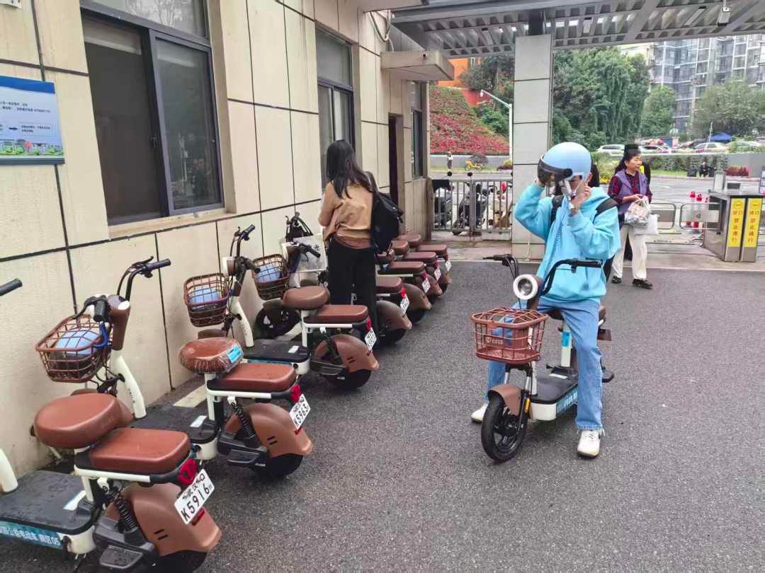 在投放点,车辆 “取还有序” 的画面已成校园日常——同学们扫码认证、佩戴安全头盔、熟练启动车辆,整个流程不超过 3 分钟。