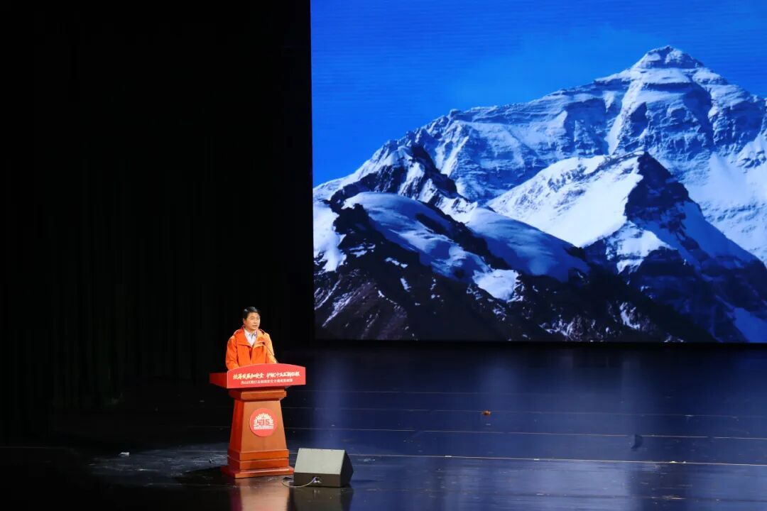 第三篇章“赓续传承”聚焦青年与未来。中国地质大学(武汉)教授陈刚登台,带来《为国而攀 为国而测》主题宣讲。大屏幕上,珠穆朗玛峰的皑皑白雪与他2022年携手儿子陈李昊从北坡成功登顶、展开国旗的画面交相辉映。“我们完成了国产北斗设备的高精度测试。”陈刚平静地讲述着那段“生死科考”,而那句“国家的‘高度’,需要中国人自己测量”让现场响起经久不息的掌声。尽管儿子在北京攻读测绘专业博士学位,但是他通过视频的方式,为现场观众分享了自己对国家安全的理解与思考。陈刚父子以言传身教践行初心使命,用实际行动诠释了:维护国家安全并非孤军奋战,而是需要一代代人接续坚守、薪火相传。