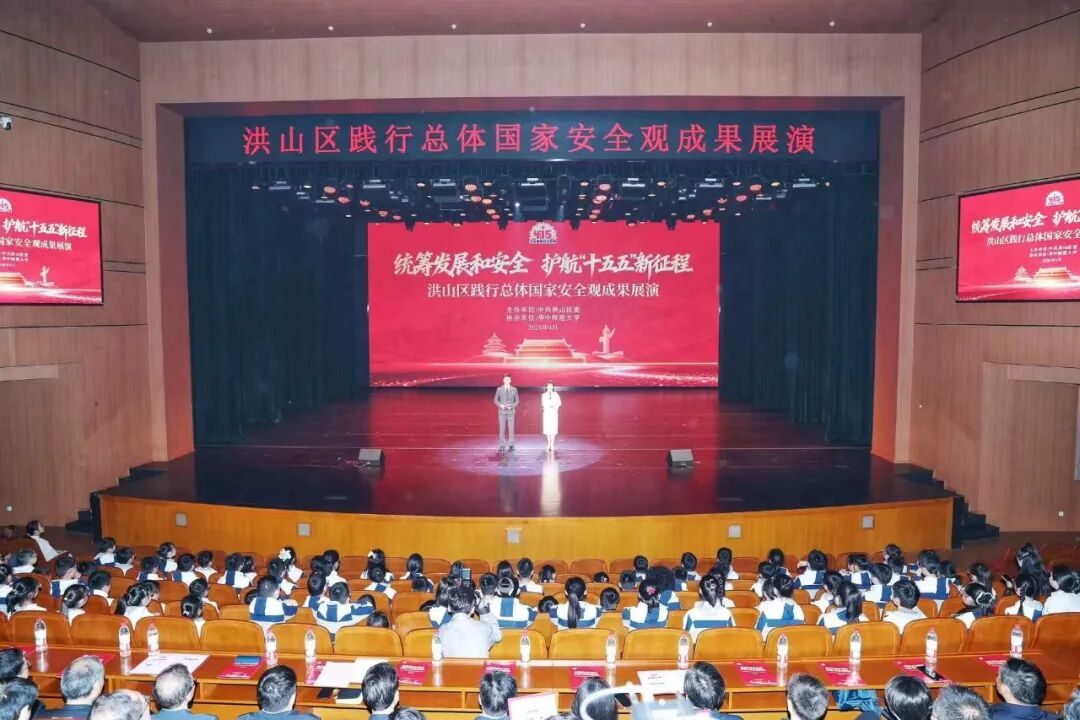 4月11日上午,在第十一个全民国家安全教育日来临之际,华中师范大学第四届校园安全文化节系列活动——洪山区践行总体国家安全观成果展演在新大学生活动中心大礼堂成功举办。本次展演以“统筹发展和安全、护航‘十五五’新征程”为主题,为师生群众们送上了一场内容丰富、思想深邃的精神盛宴。省、市直属工作机关领导,华中师范大学校领导,洪山区“四大家”领导班子成员及各界代表约1000人参加了活动。