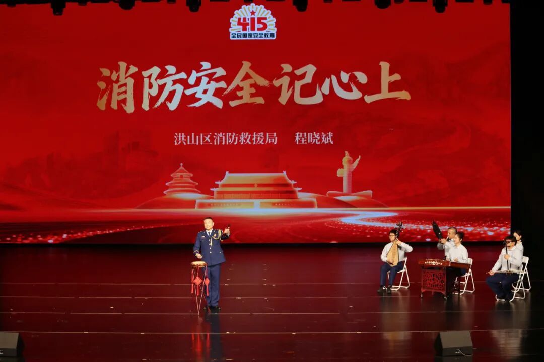 洪山区消防救援局表演的湖北大鼓《消防安全记心上》令人耳目一新。南湖消防救援站站长程晓斌身着火焰蓝制服,一手敲鼓、一手打板,用地道楚韵唱出“消防安全重于山,防患未然记心间”,将消防救援精神与应急安全技巧融入鼓词,铿锵有力又接地气,赢得满堂喝彩。