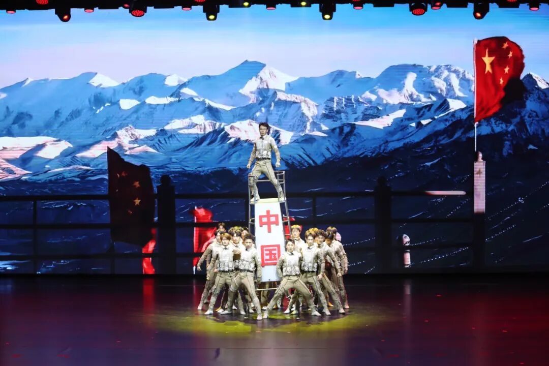 紧接着,中南民族大学学子以舞蹈《界碑》震撼登场。舞者们用刚劲有力的肢体语言,演绎了边防战士如界碑般屹立不倒的忠诚,将第一篇章推向高潮。