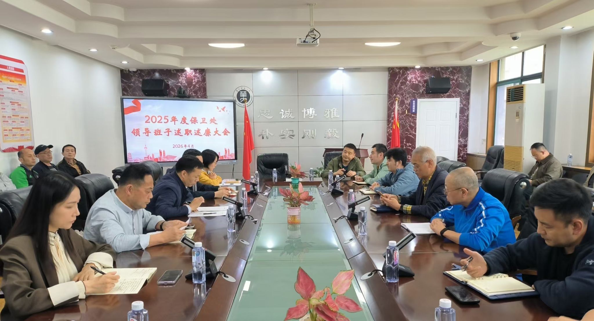 4月15日下午,保卫处2025年度领导班子和领导干部述职述廉大会在处三楼会议室召开。保卫处全体职工参会,组织部张琳老师到会指导。会议由保卫处处长王军主持。