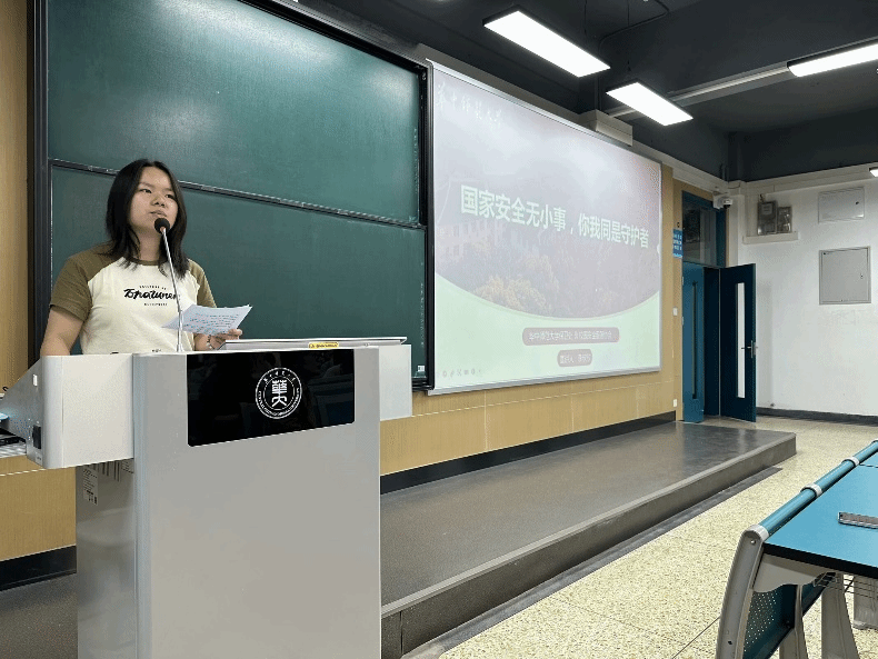 校园安全服务协会讯(通讯员 吉天昊) 为深入贯彻落实总体国家安全观,增强青年学子的国家安全意识,5月5日下午,华中师范大学保卫处、校园安全服务协会联合法学院在八号教学楼8516教室举办“国家安全无小事,你我同是守护者”主题宣讲活动。法学院2022级、2023级本科生及辅导员参加,宣讲会由校园安全服务协会成员李欣欣主讲。