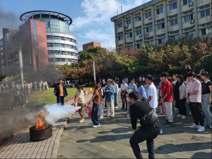 演练开展前,学校保卫处消防专员准备了明火扑灭、虚拟仿真灭火和模拟疏散逃生体验等多项训练科目。