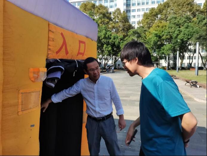 接下来,全体师生依次有序体验了实体二氧化碳灭火器、虚拟仿真实验灭火器和穿越模拟疏散逃生体验馆等项目,在模拟疏散逃生体验中部分同学没有掌握正确的技巧,未能在规定时间内完成穿越,梅伏生副处长强调了在火灾中时间的重要性,并演示了迅速用湿毛巾捂住口鼻、弯腰低姿穿越模拟疏散逃生体验馆的过程。与会师生通过亲身体验,在实训中进一步提高了处置突发火情的应急能力,为日后可能遇到的紧急情况增添了一份安全保障。