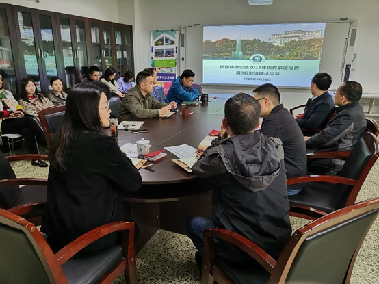 3月21日下午,华中师范大学信息化办公室2018年优秀事迹报告会暨3月政治理论学习会于田家炳八楼会议室举行。信息化办公室全体职工参加。本次会议由谭冬霞副主任主持。