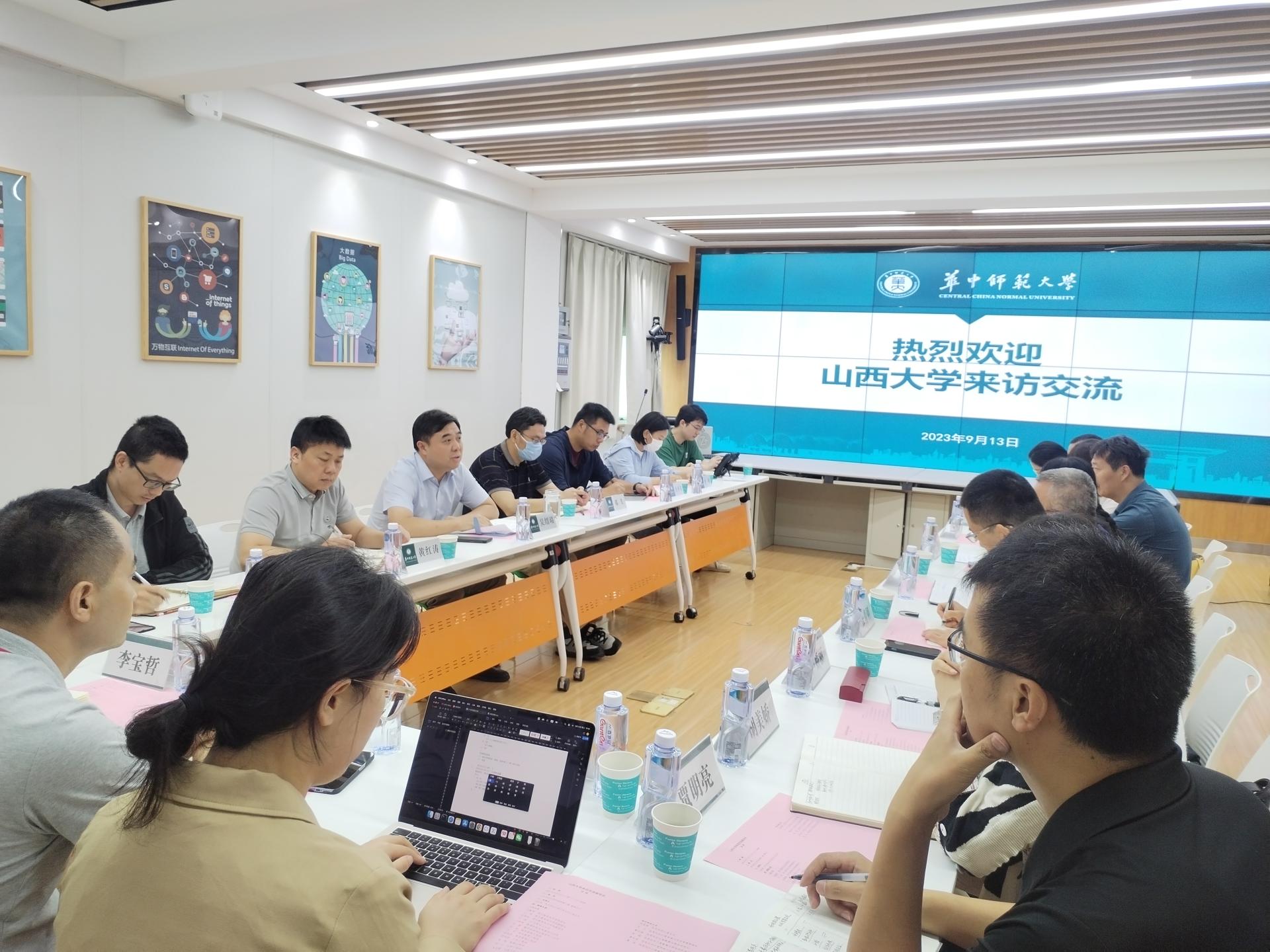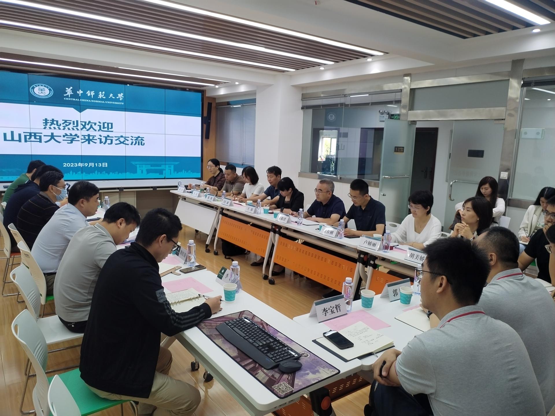 2023年9月13日上午,山西大学现代教育技术学院宋毅君院长一行十三人赴我办进行调研交流,座谈交流会在田家炳8楼指挥大厅举行。会议由信息化办公室吴绍靖主任主持,相关业务部门邓飞、唐亦非、黄红涛、李超、夏欣和胡炜老师参会。