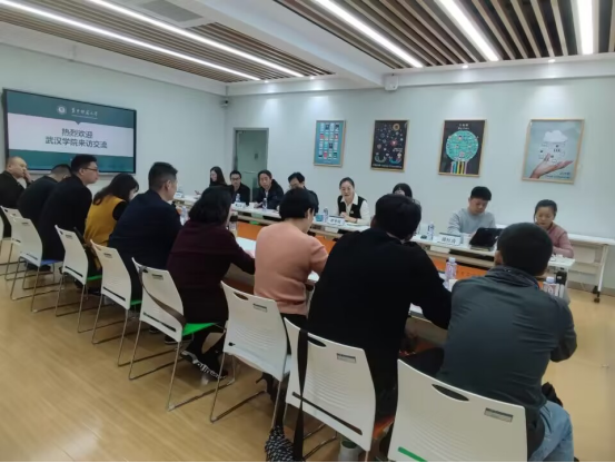 2023年10月10日上午,武汉学院校党委常委、副校长罗航一行九人来我校调研。座谈交流会在田家炳楼8楼指挥大厅举行,信息化办公室副主任刘爱民、谭冬霞及黄红涛、肖明、周伟等相关业务部门老师,本科生院副院长曾艳梅、运行办科员李思文,财务处信息科科长黎志涛参会。会议由谭冬霞主持。