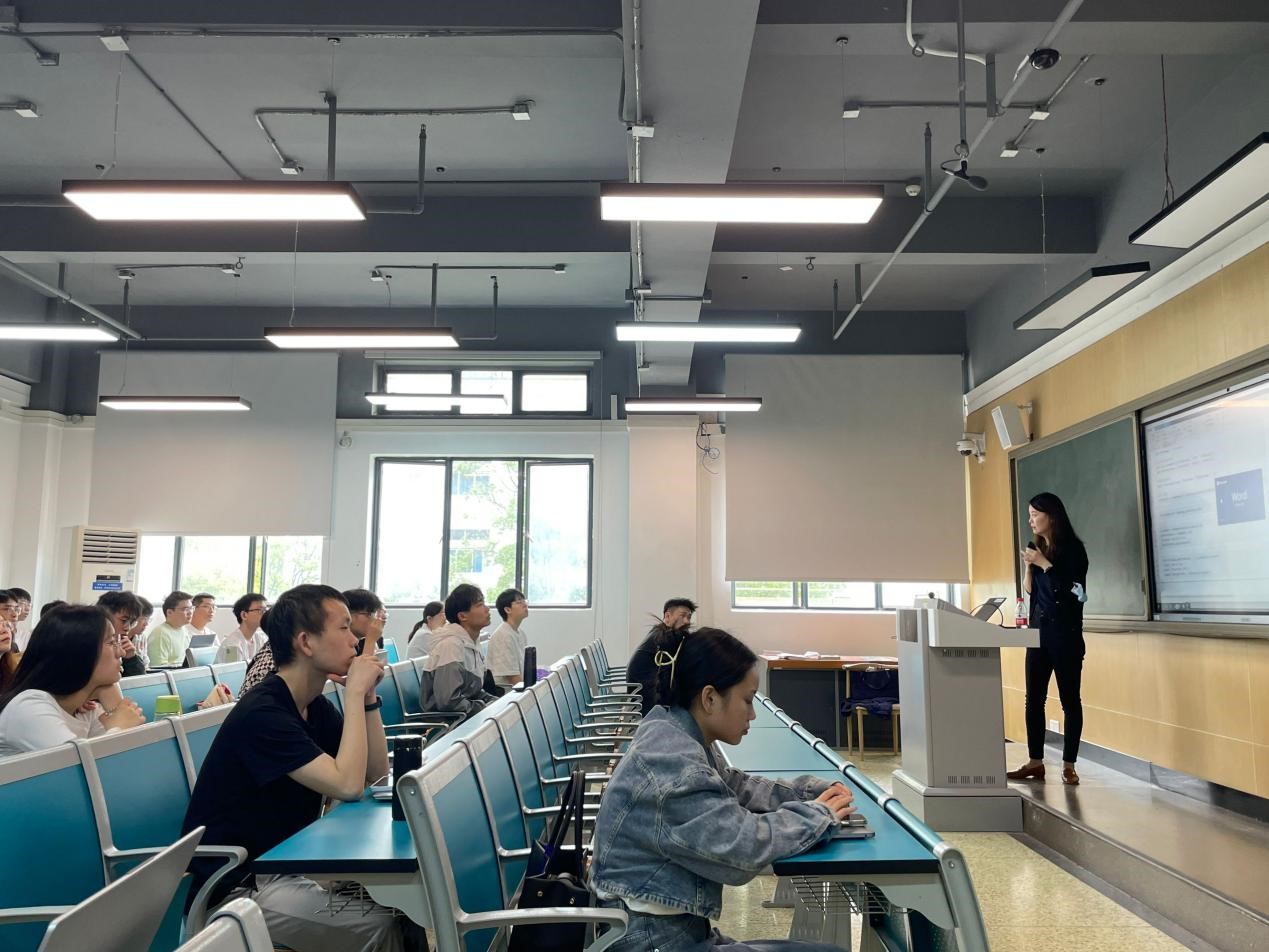 学生在整个讲座过程中认真地听讲。在互动环节,同学们积极踊跃提出自己的疑惑,阮卡佳老师细致耐心地为他们解答。