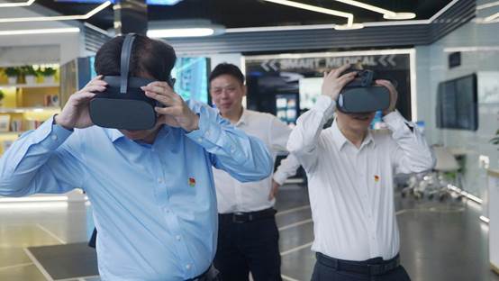 首先,李鸿飞一行参观了湖北移动5G智慧创新港展厅。在展厅中,他们详细了解了5G技术的最新应用与发展,并亲自体验了先进的VR技术,感受到了科技带来的沉浸式互动乐趣。