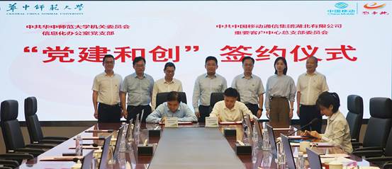 座谈期间,双方还进行了党建共建交流活动。华中师范大学机关委员会信息化办公室党支部与中国移动湖北公司重要客户中心总支部委员会共同签署了“党建和创”活动倡议书。未来,双方党支部将建立常态化交流机制,分享党建工作经验与优秀案例,聚焦教育数字化,共同实现校企数智化高质量发展。