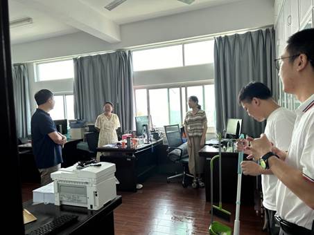 2024年8月31日上午9点,吴绍靖主任带领信息化办公室领导班子对单位各业务部门进行了新学期人员到岗工作检查,全面部署了下半年的工作计划,并对学校教育数字化转型工作进行了重点安排。