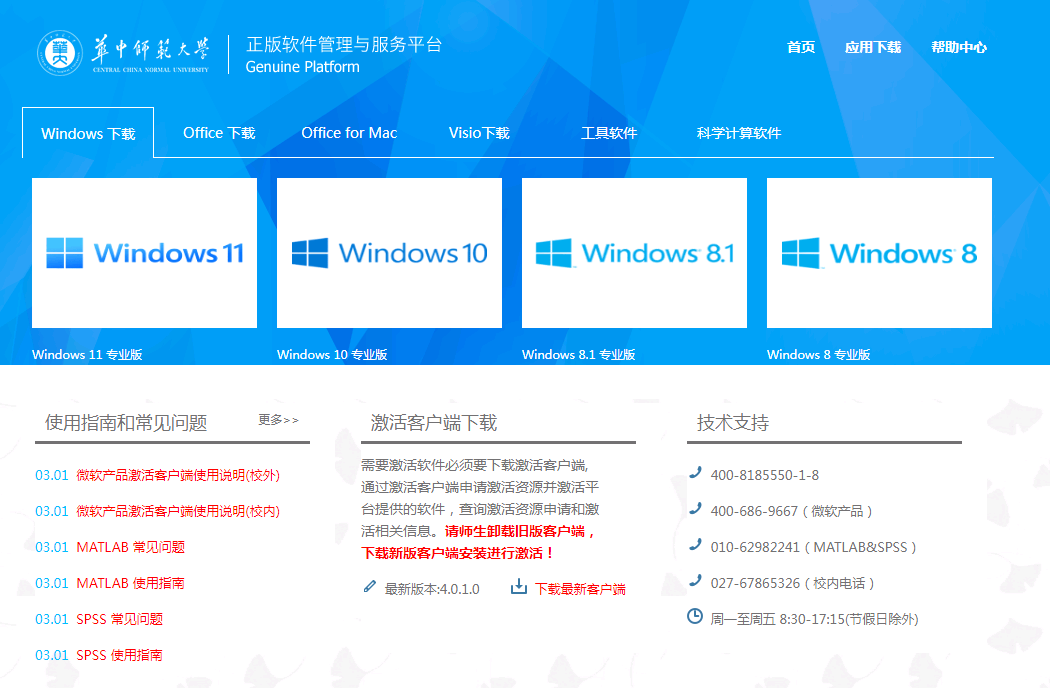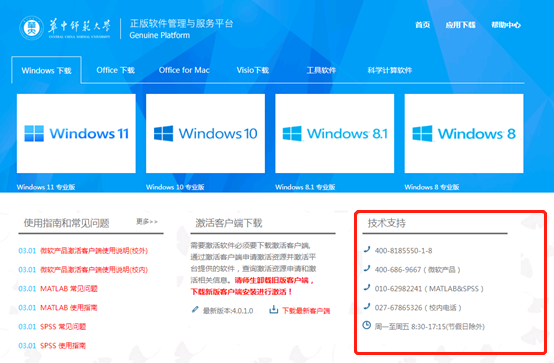 为了推进华中师范大学软件正版化,提高学校信息化应用、管理和服务水平,以及更好地保障与满足全校师生在教学、科研、办公、学习等方面使用正版操作系统及办公软件的需求,信息化办公室现面向全校师生推出全新升级的“正版软件管理与服务平台”,该平台面向全校师生提供微软操作系统、Office办公软件等正版软件的免费下载和激活服务,欢迎体验。