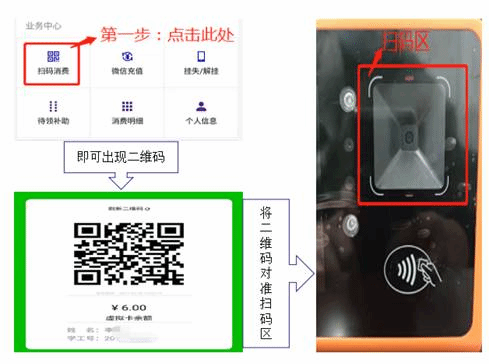 (2)圈存机微信扫码充值。方法如下: