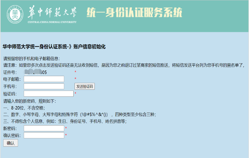 为保障密码安全,请尽快进入信息门户(http://one.ccnu.edu.cn)进行统一身份认证账号初始化操作。